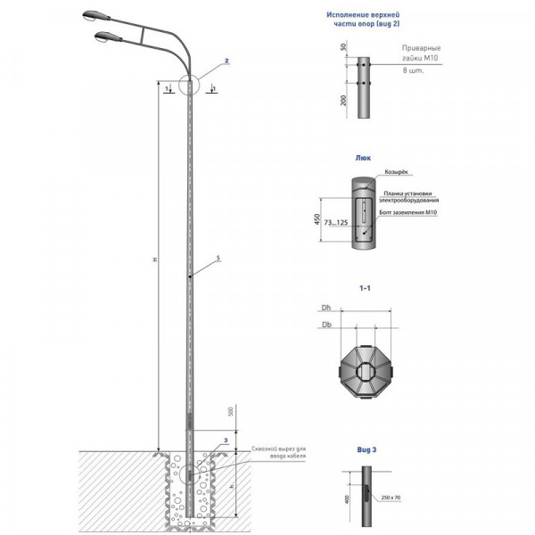 Опора освещения НПГ-8,0/9,5-02-ц, где: