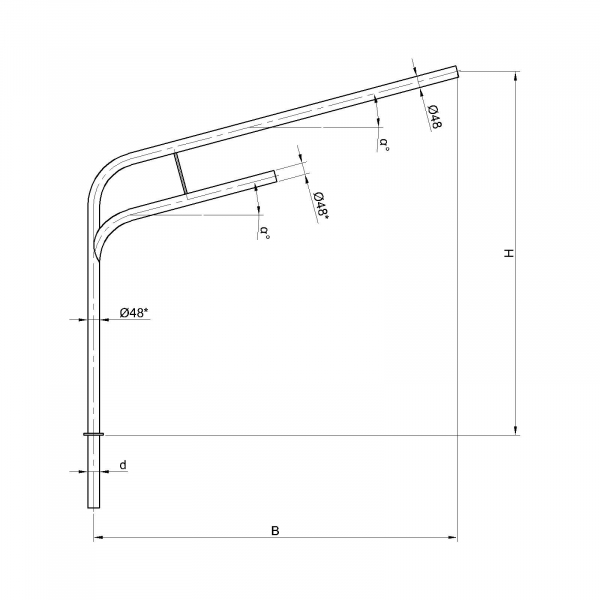 Двухрожковые кронштейны К9-3,0-2,5-1-1 предназначены для крепления светильника на трубчатой опоре освещения.